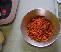 1.胡萝卜去皮切丝。大支的胡萝卜也可以用,一大支的量即可。