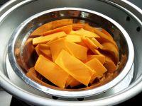 1.南瓜挖去瓤,去皮洗净,切薄片,入锅蒸至软烂。