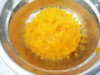 2.蒸好的南瓜用勺子碾成泥。